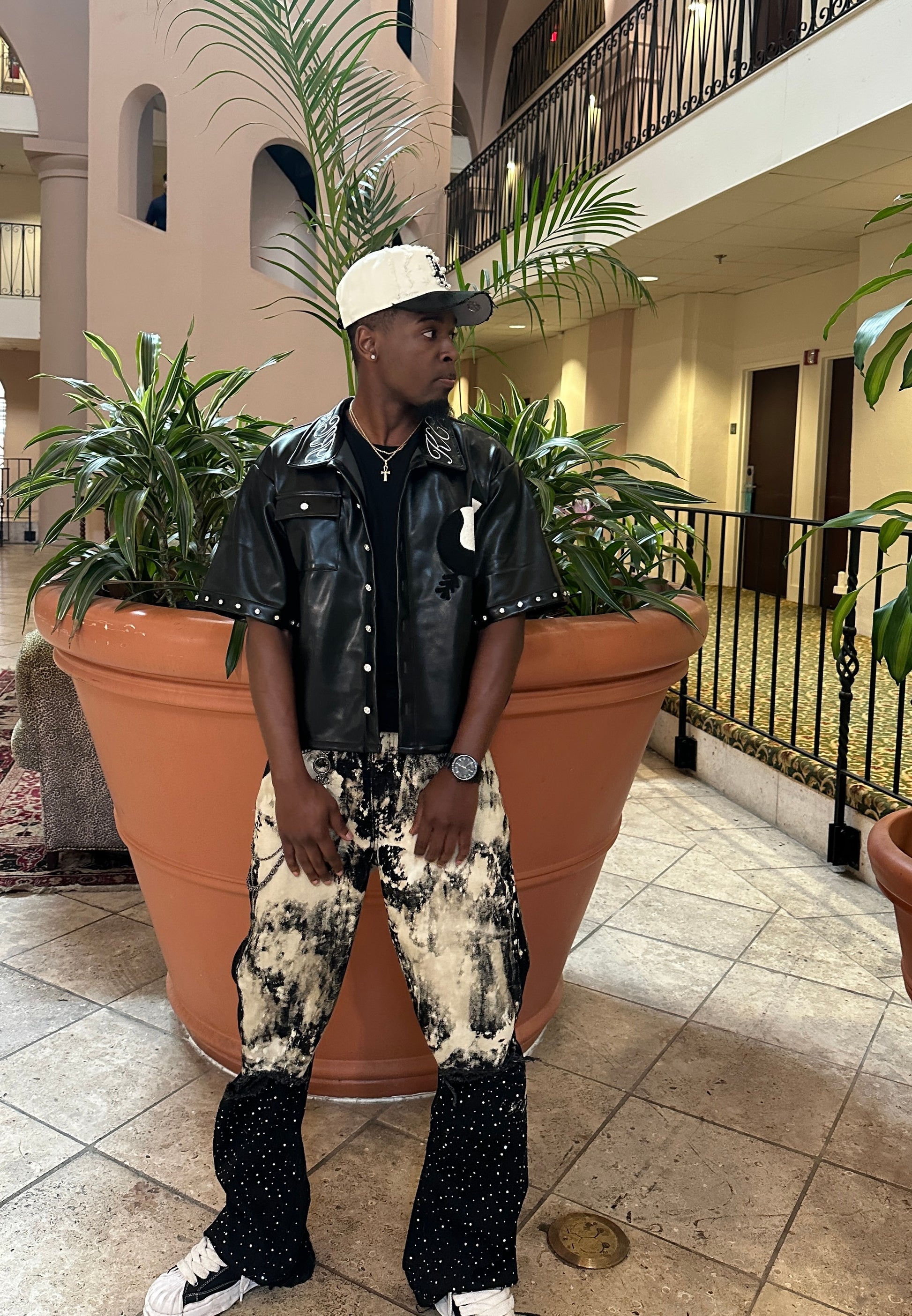 Black Diamond Cut Leather Shirt